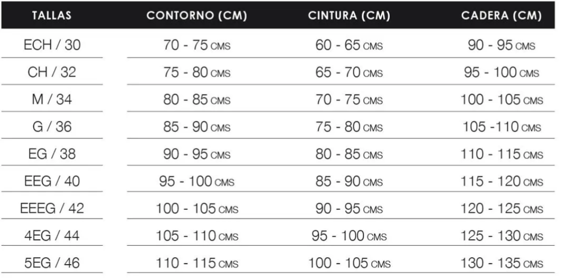 •Uso: segunda etapa postoperatorio, postparto y uso diarios •Nivel de compresión: media